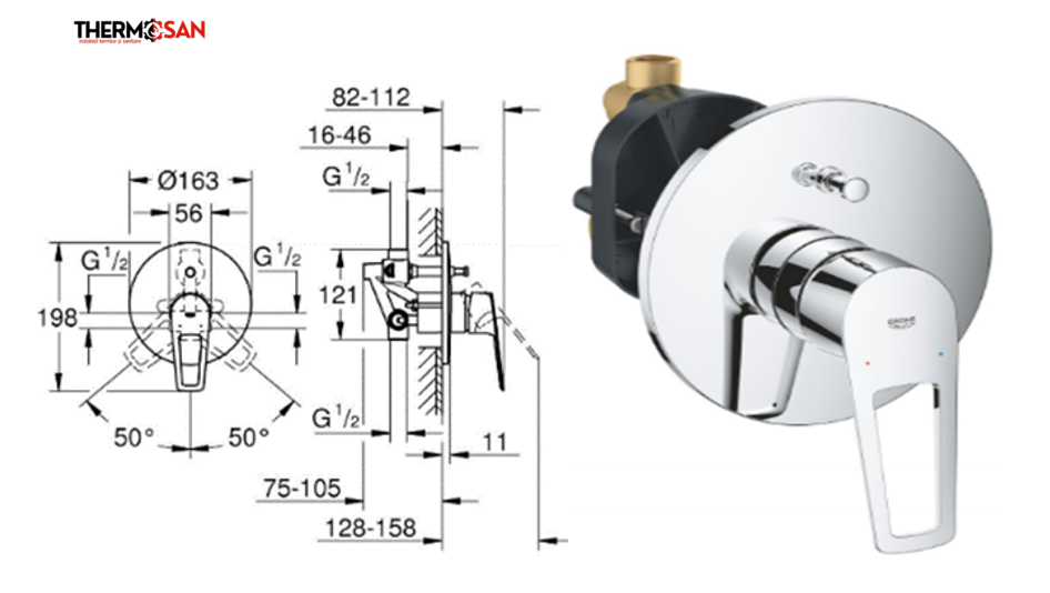 Baterie cadă-duș încastrată BAULOOP – Set complet (Kit 1 + Kit 2)