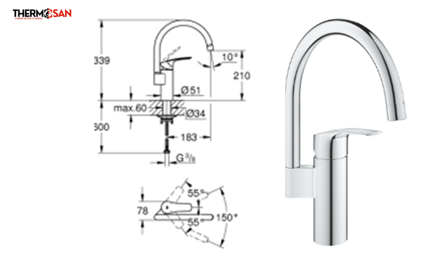 • Finisaj cromat Grohe StarLight®, rezistent la zgârieturi și coroziune.