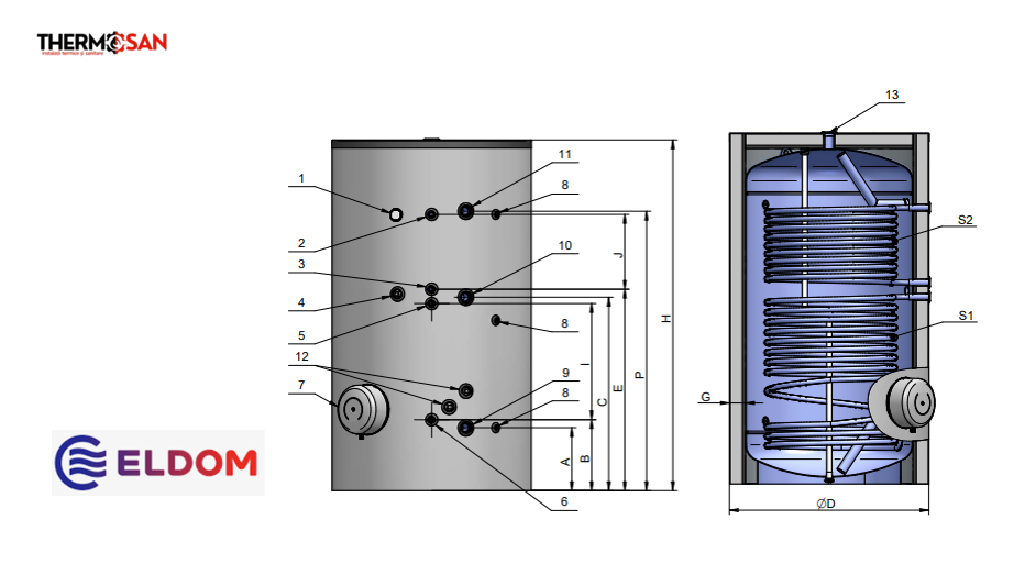 Boiler termoelectric ELDOM Green Line 1000 L, 12kW - 2 serpentine