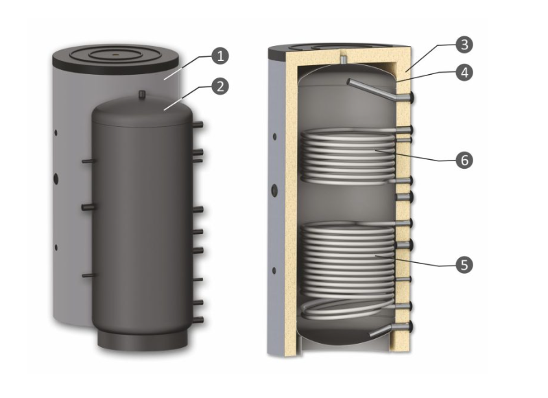 Puffer cu două serpentine Sunsystem PR2 1000L+IZ acumulează căldura produsă de centrală. Recomandat pentru sistemul de încălzire. Oferă funcționarea optimă a cazanului pe biomasă, ceea ce îi permite să funcționeze la puterea nominală chiar și atunci când sistemul de încălzire nu are nevoie de toată energia termică. Căldura este stocată într-un tampon și poate fi folosită chiar și atunci când cazanul s-a răcit.